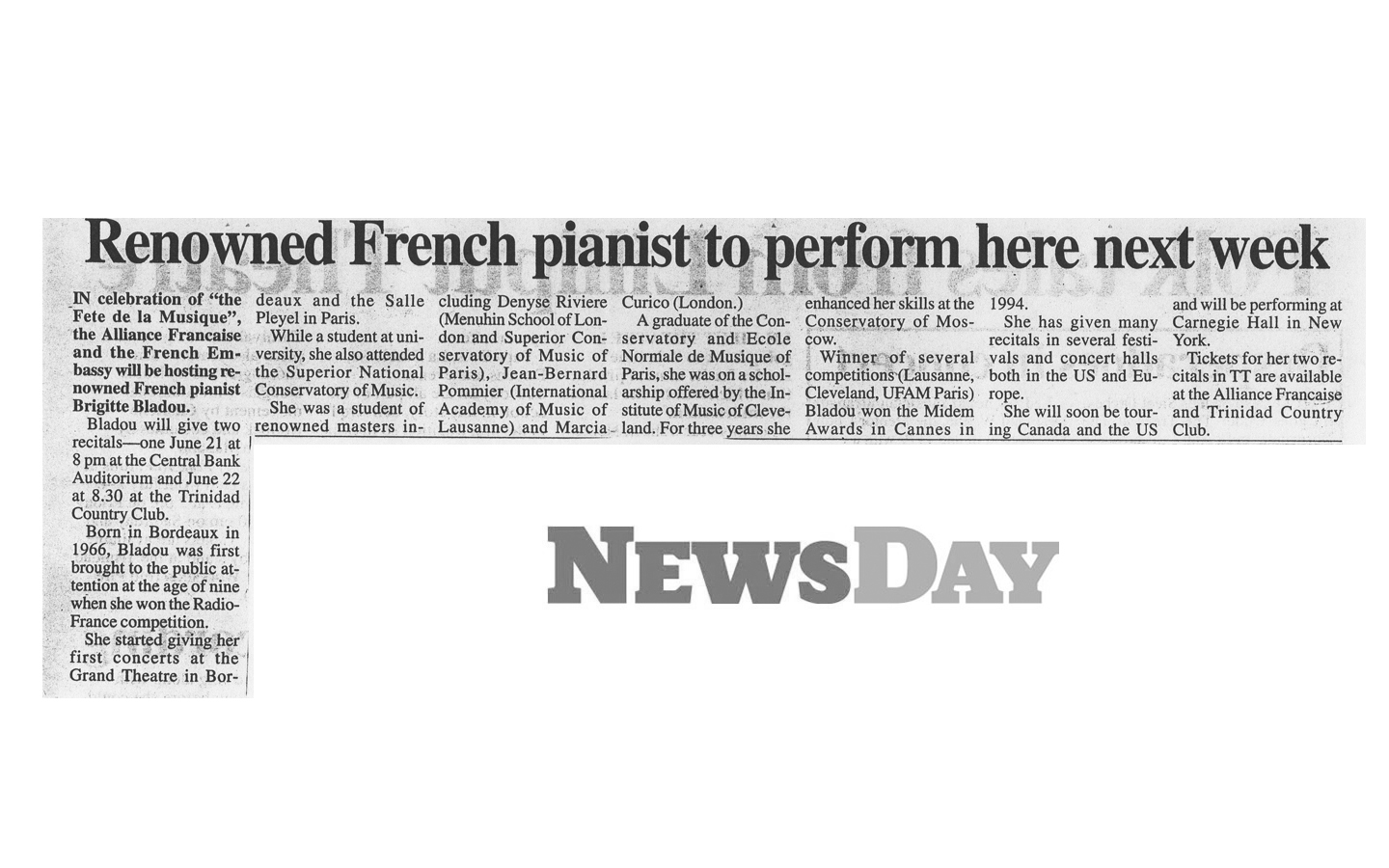 Cliquer sur le nom du journal pour voir l'article de presse